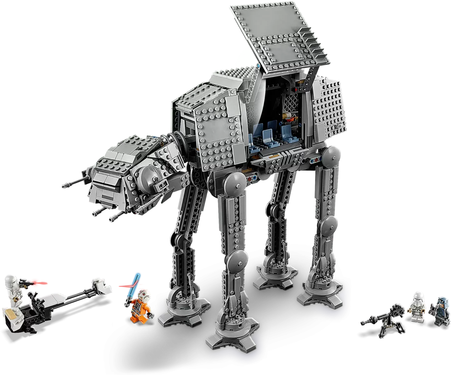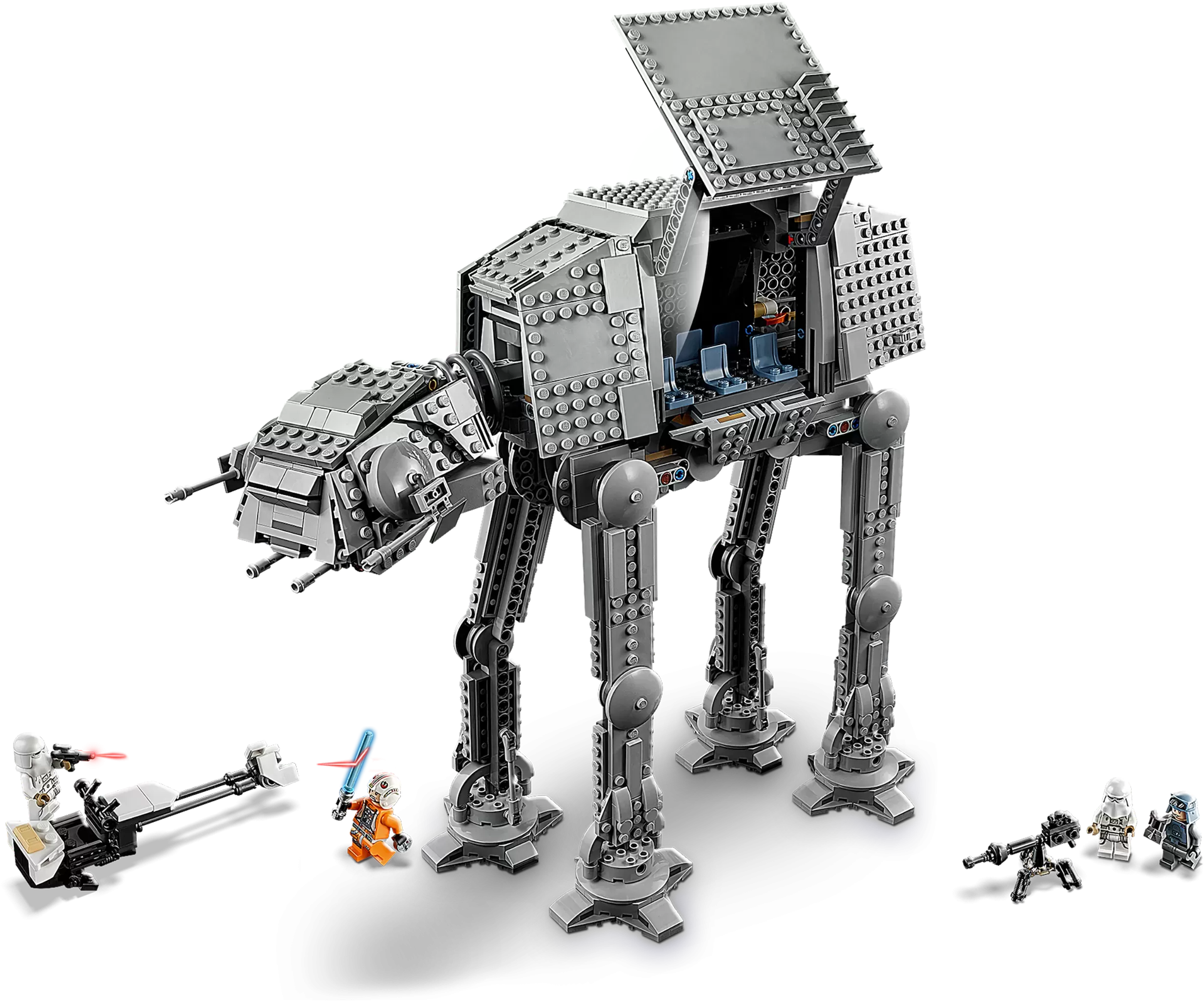 �?The AT-AT has a cockpit for 3 LEttgGO minifigures, foldout panels, spring-loaded shooters, a speeder bike, winch, bottom hatch so Luke can throw in the thermal detonator element, and more for realistic, creative play.