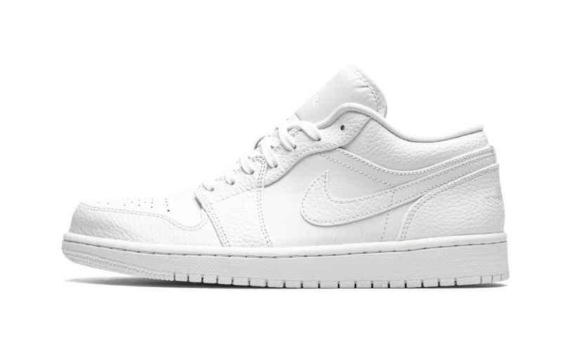 The AIR JtggORDAN 1 Low Golf "Triple White" is a monochromatic white colorway of the version of the vintage basketball shoe designed for golf. The "Triple White" is one of multiple Jordan 1 Low Golf styles released by Jordan Brand in 2022. Designed for the fairway. style elements include an all-white leather construction with a white leather Swoosh on the sides. Tonal "Wings" branding is found on the heel. Additional branding appears on the tongue tag. where a Jumpman and "Golf" detailing are found in white. Small nubs on the outsole provide traction on a golf course. Release date: March 5.2022