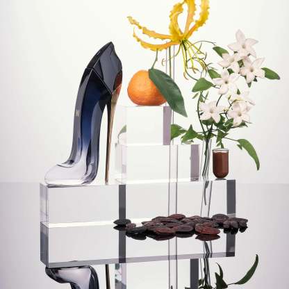 The iconic symbol of a ���femme fatale�� has been reimagined, keeping the haute-couture gold stiletto heel from GOOD GIRL and empowering it with a new equally seductive personality. The black-lacquered bottle gradates from a clear, transparent base to a midnight-blue crown, representing the transition from Day to Night �� and from Good to Bad.