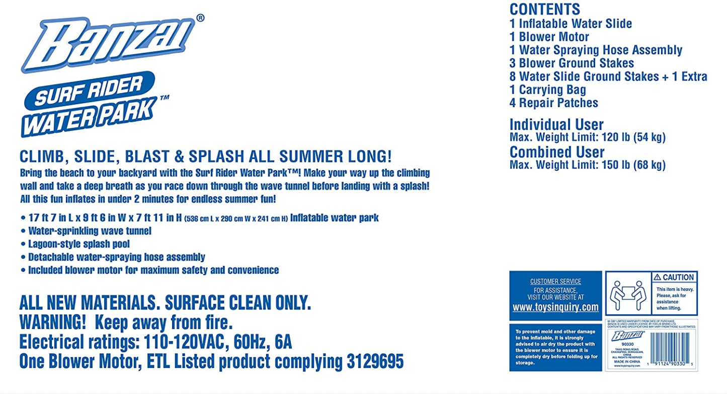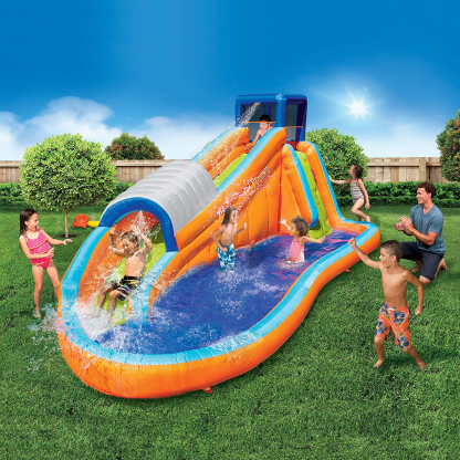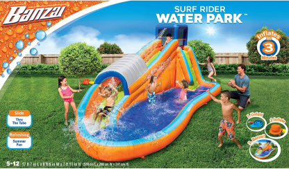 Banzai Surf Rider Kids Inflatable Outdoor Backyard Aqua Water Slide Splash Park with Climbing Wall, Tunnel Slide, and Lagoon Splash Pool for Ages 5-12