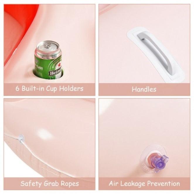 🌊 Lovely Design & 6 Cup Holders: It is designed like a flamingo, and has a vibrant pink color with beautifully detailed design. There are wings on its side and a cute tail on the back that can be used as a small backrest. Having 6 cup holders on the floating island, and you don't have to hold the drink all the time.