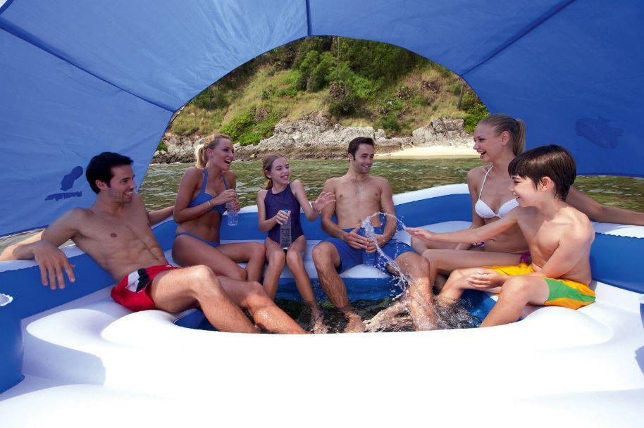 📣 Checkout Our New Giant Floating 6 Person Island Raft Lounge with UV Shelter and Cooler Bag