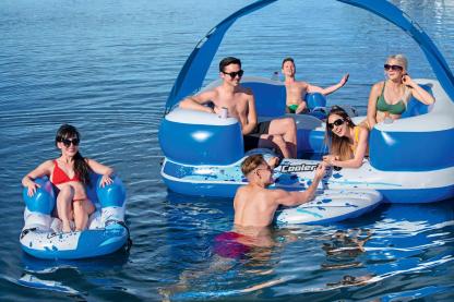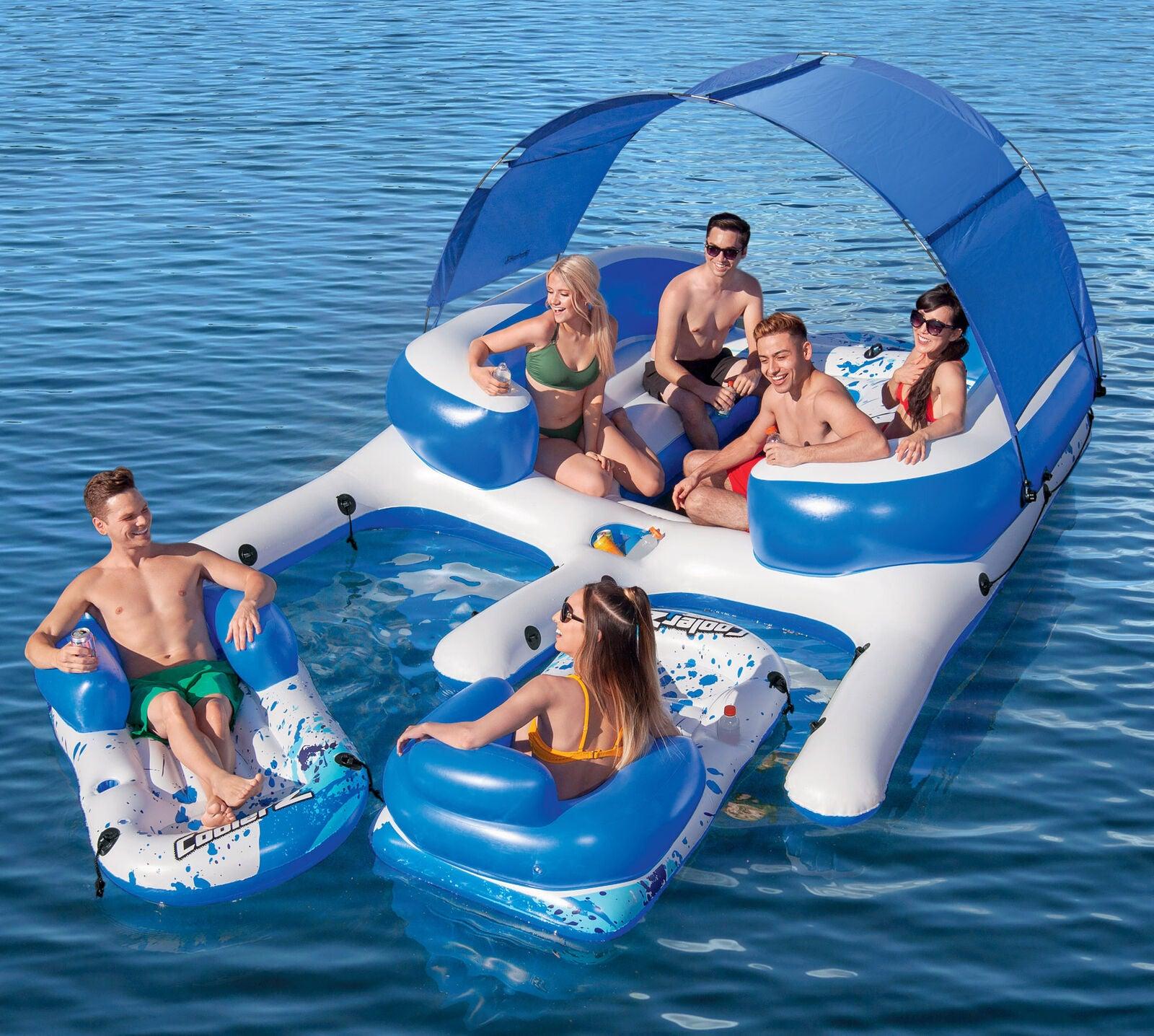8-Person Floating Island with UV Sun Shade and Connecting Lounge Rafts