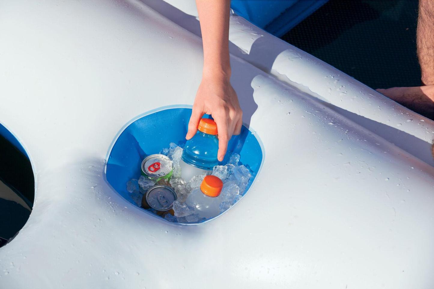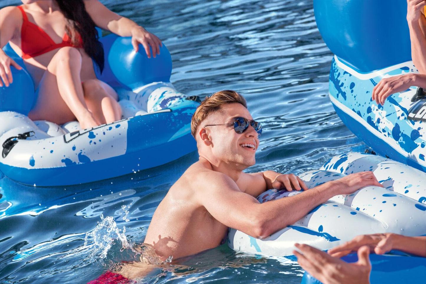 🌊 Wide Functionality: Wide pillow backrests for ultimate relaxation, 6 cup holders, grab ropes on each end to help people get on and off.