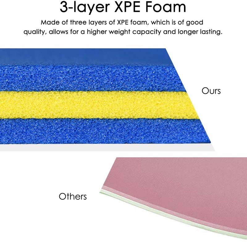 - Three-layer Composite XPE Foam: It is made up of three layers of eco-friendly XPE foam. The water pad features superior buoyancy with high quality, no water absorption, and no deformation. Its material is safe, odorless, and bouncy, which can effectively prevent bacteria from breeding and is durable.
