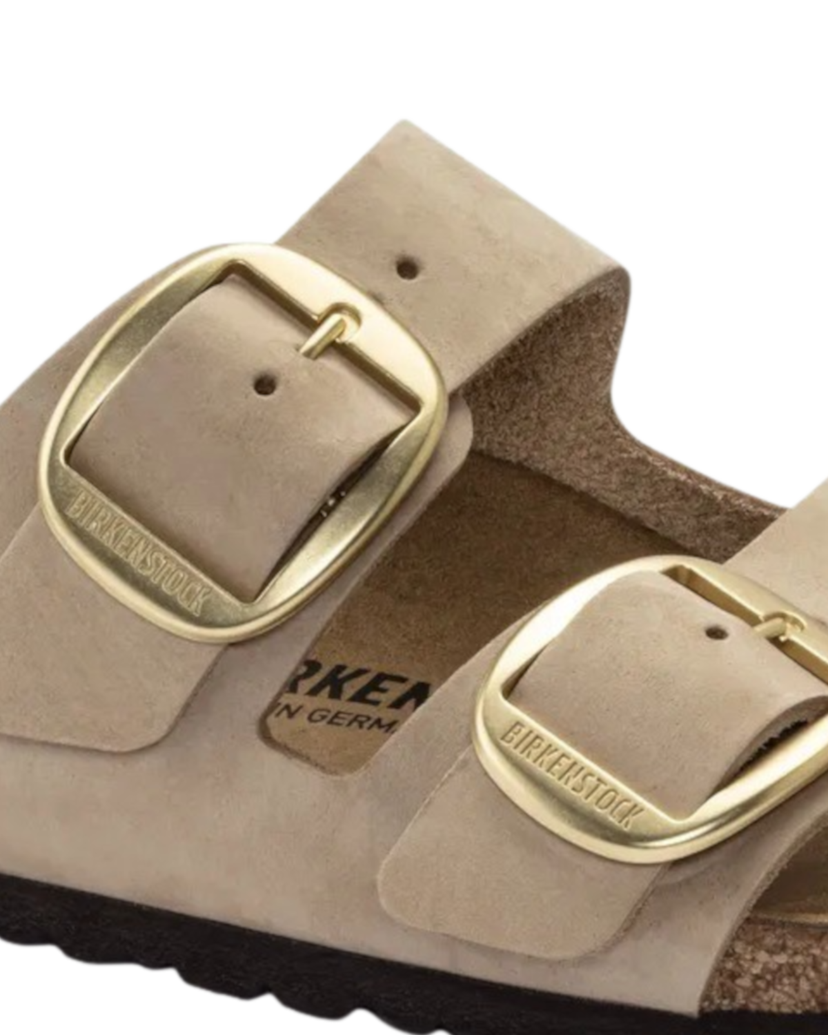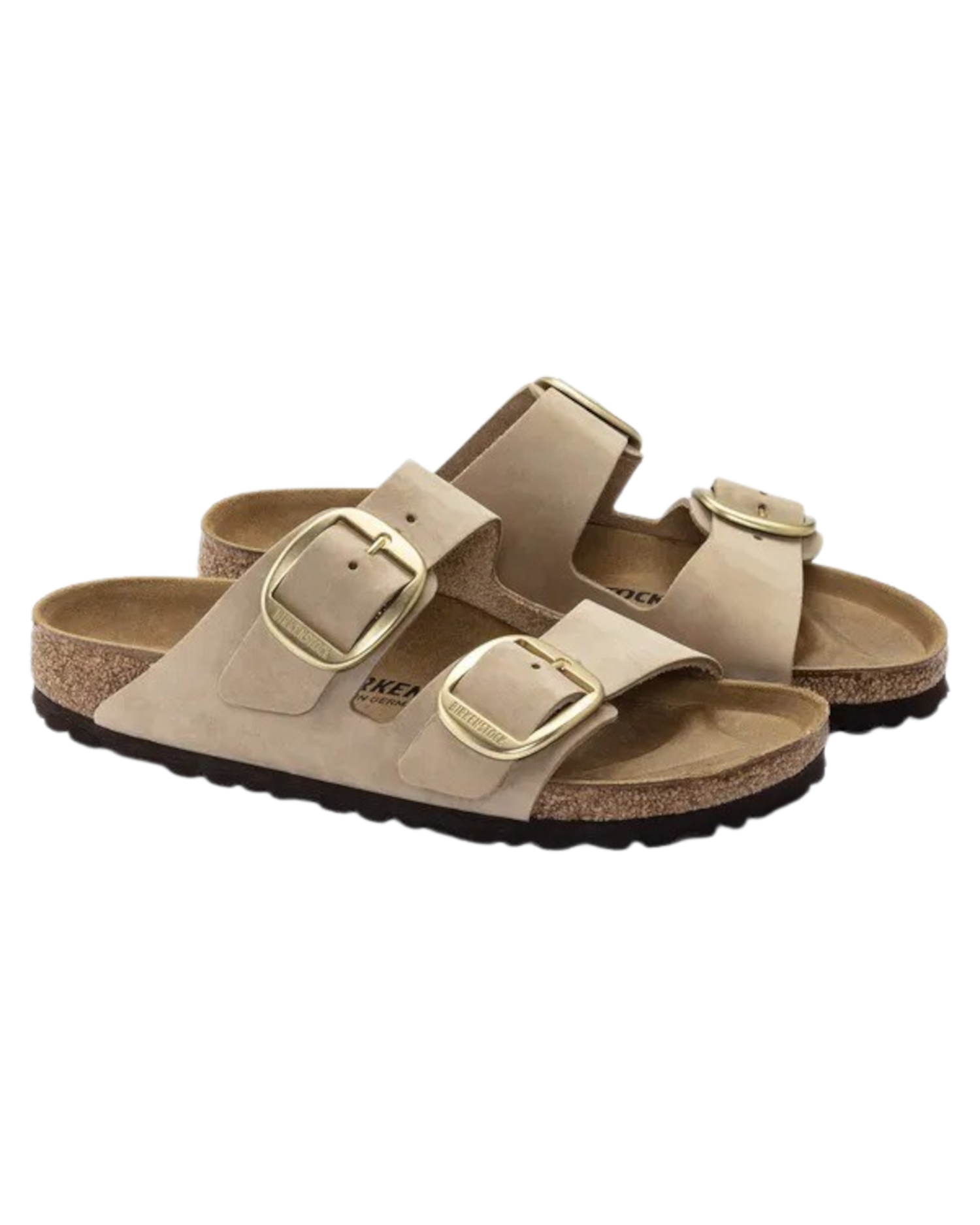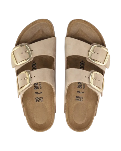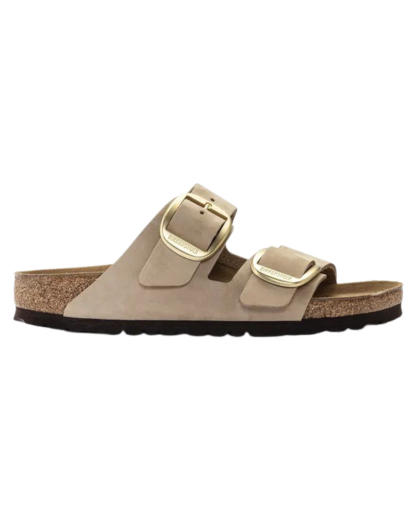 Meet the Birkenstock Womens Arizona Big Buckle Nubuck Leather Sandals in Sandcastle-a timeless classic with a bold twist!