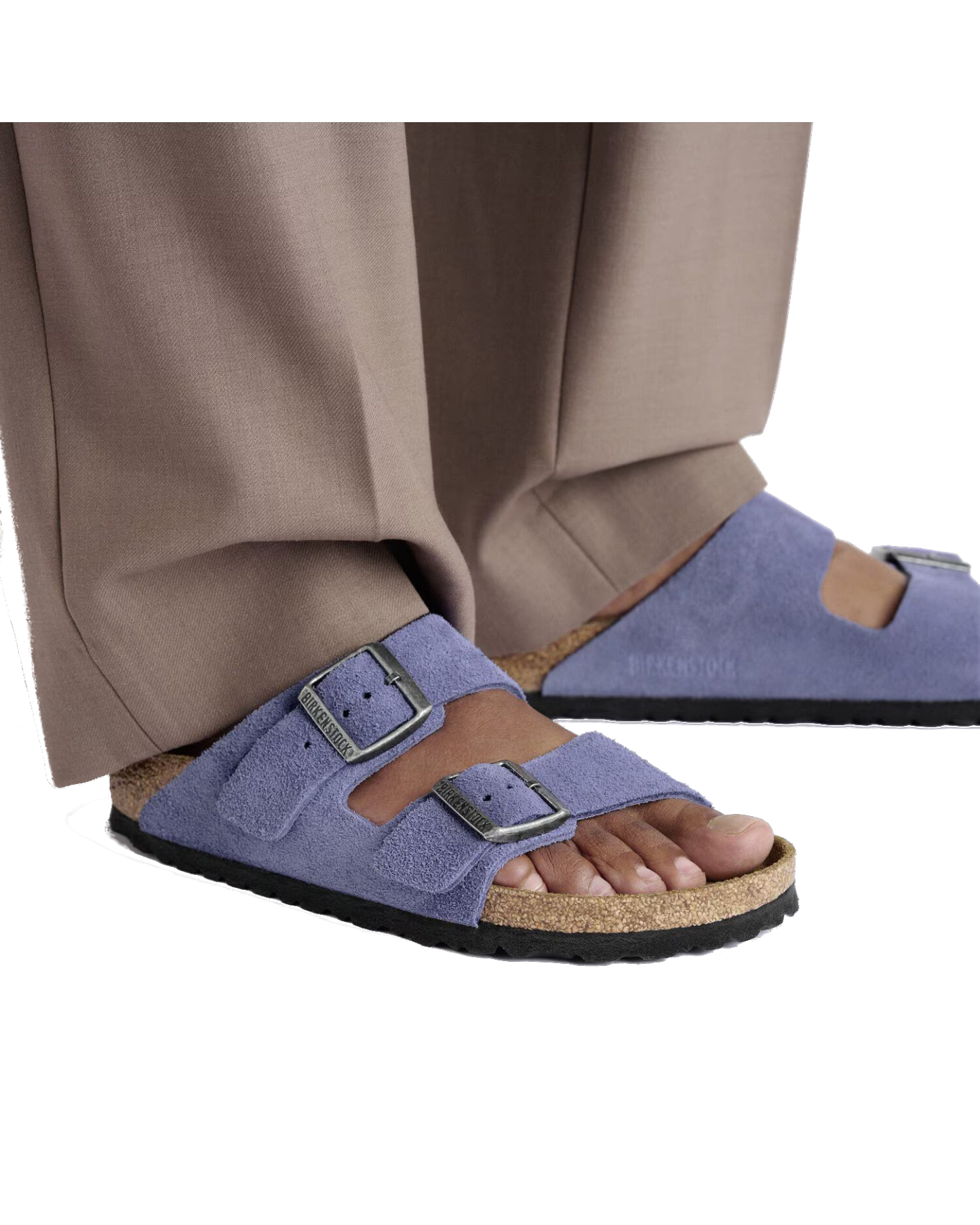 Iconic style meets unmatched comfort with the Birkenstock Womens Arizona Suede Leather Sandals in Purple Dusk.. A true classic, this two-strap design is effortlessly timeless.