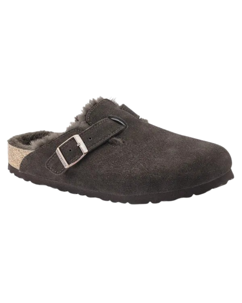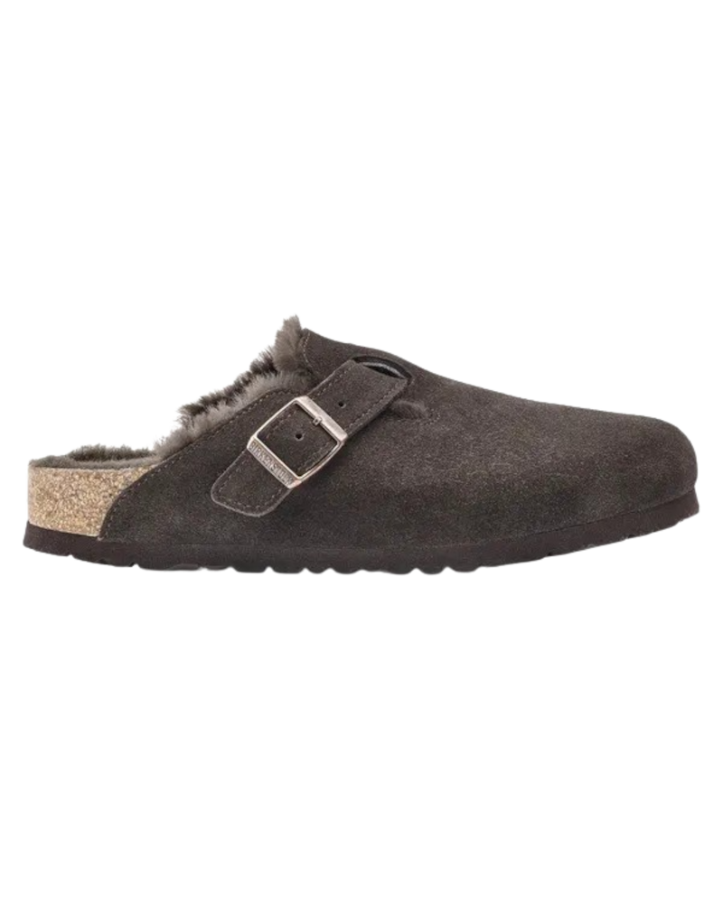 Go bold and stay cosy with the Birkenstock Womens Boston Shearling Suede Leather Sandals in Mocca!