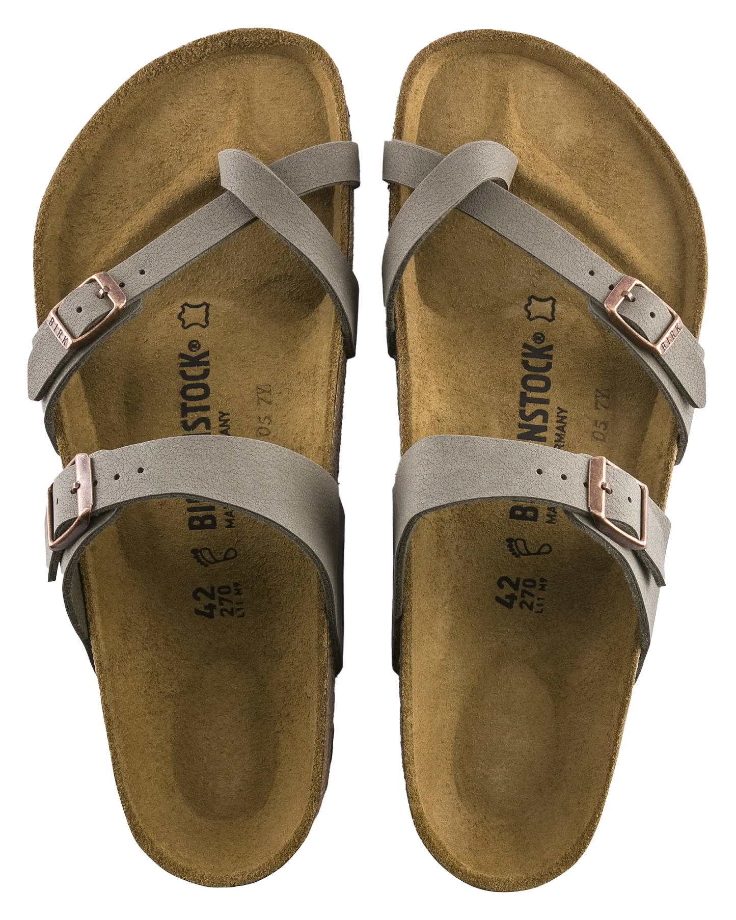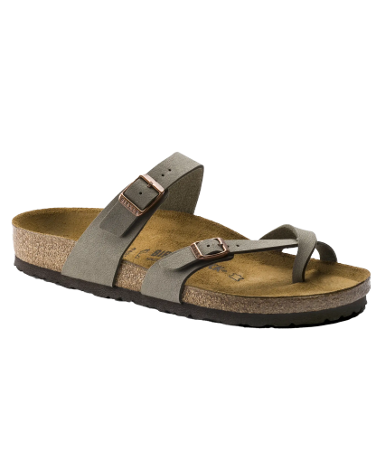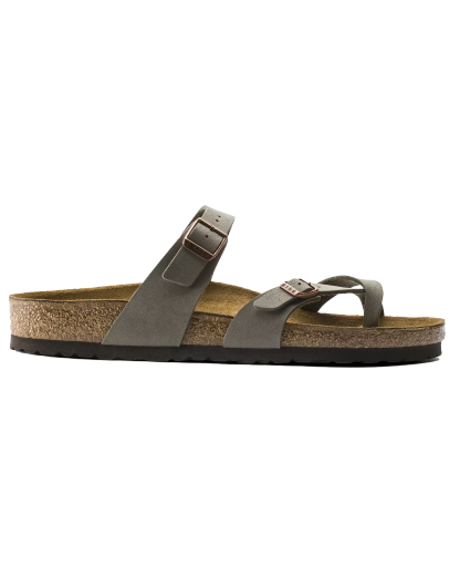 The Birkenstock Mayari Birko-Flor Nubuck Sandals are a jaunty thong sandal with a toe loop. The impressive combination of design and wearability will see fashion-conscious men and women through the day with elegance and comfort. The upper is made from the skin-friendly, hard-wearing synthetic material Birko-Flor in a sophisticated nubuck look which boasts a texture and colour that could almost be mistaken for real leather.