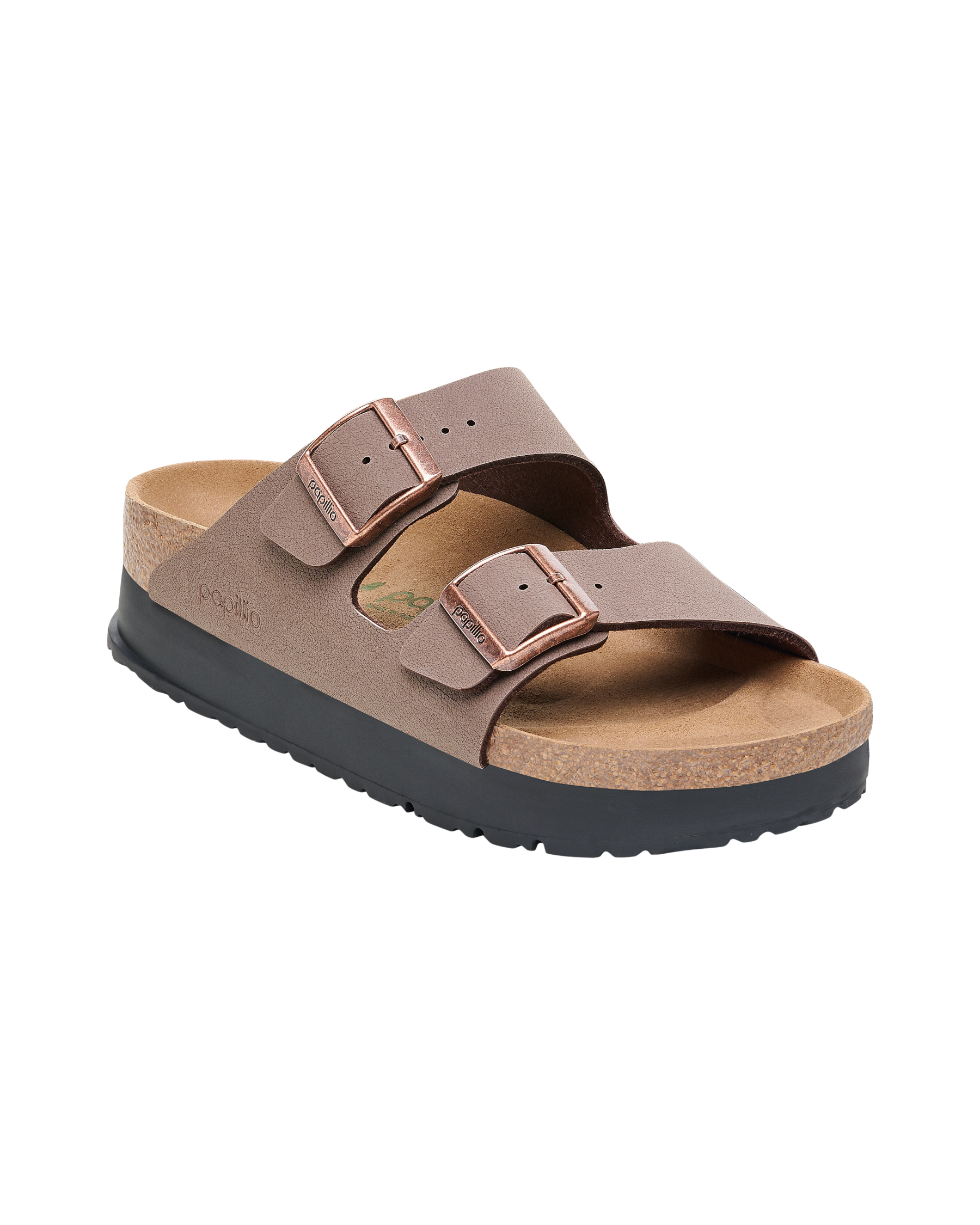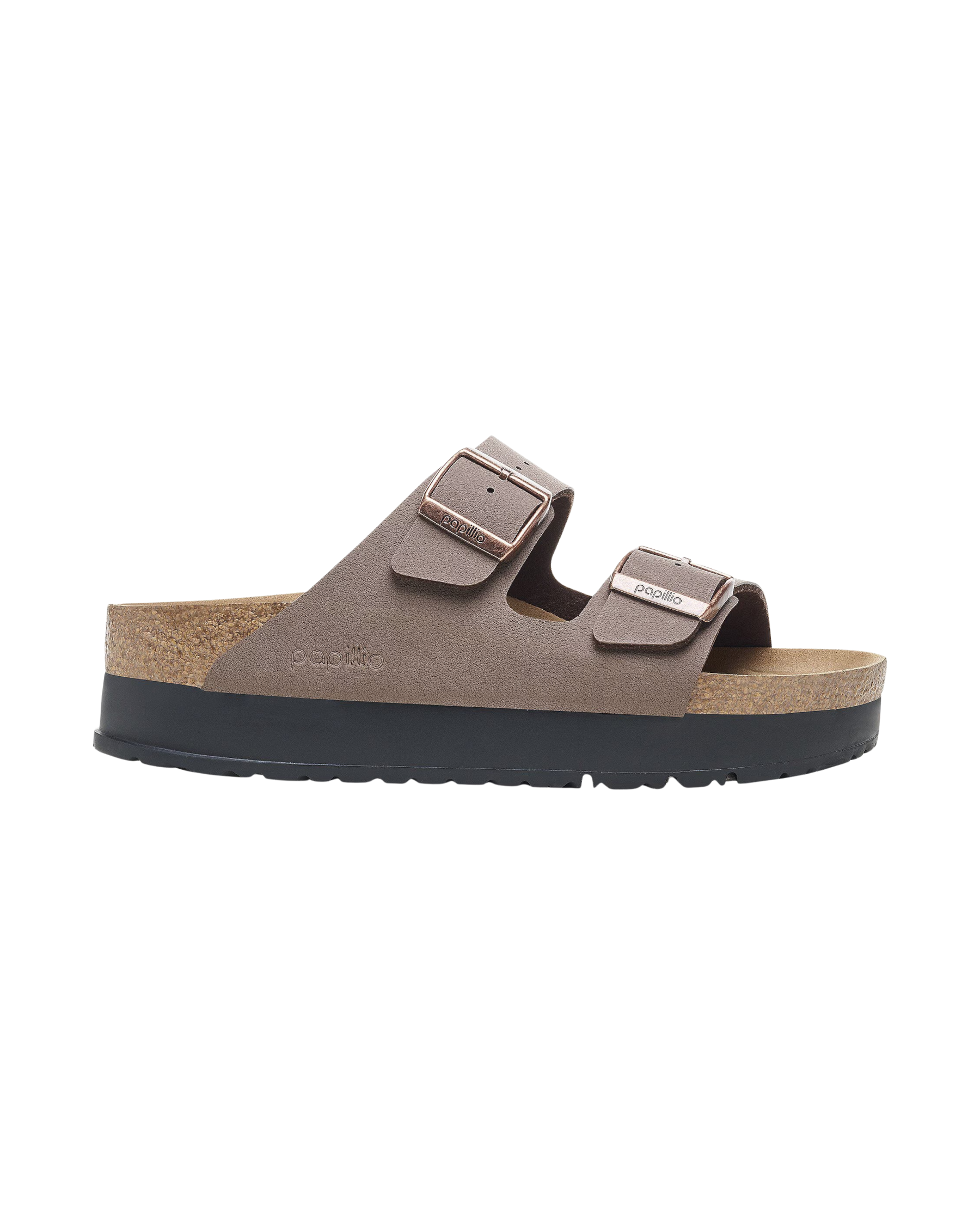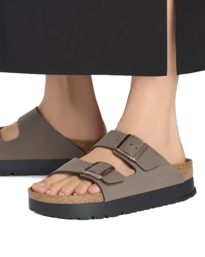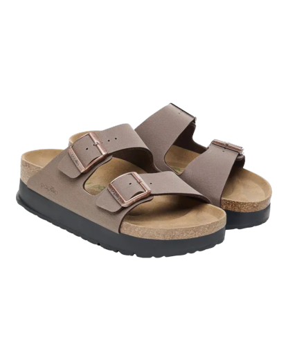 Take your style to the next level with the Womens Papillio Arizona Birko-Flor Flex Platform Sandals in Mocha from Birkenstock.