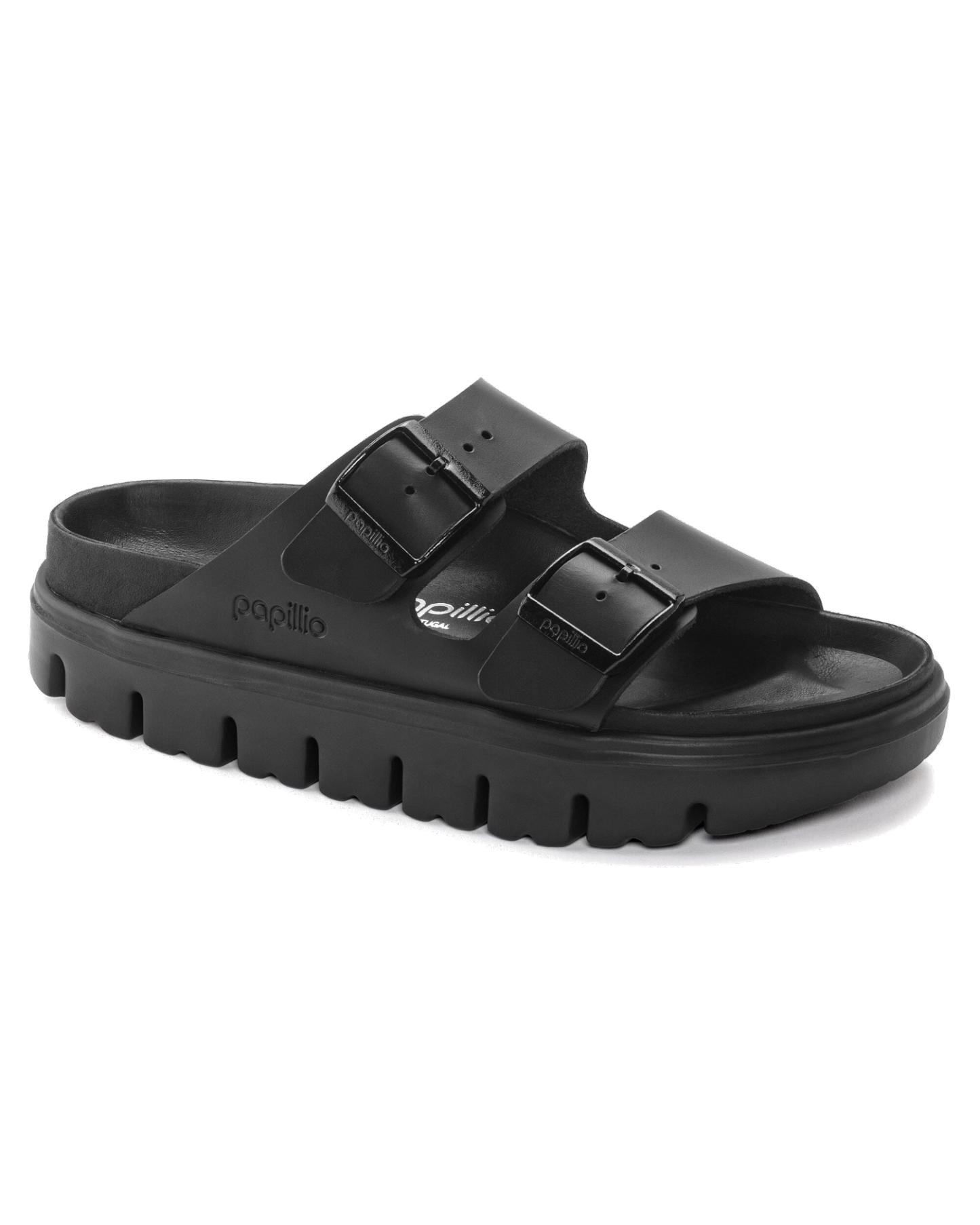 Elevate your style with the Birkenstock Womens Papillio Arizona Chunky Natural Leather Sandals in Black-a bold twist on a timeless classic!