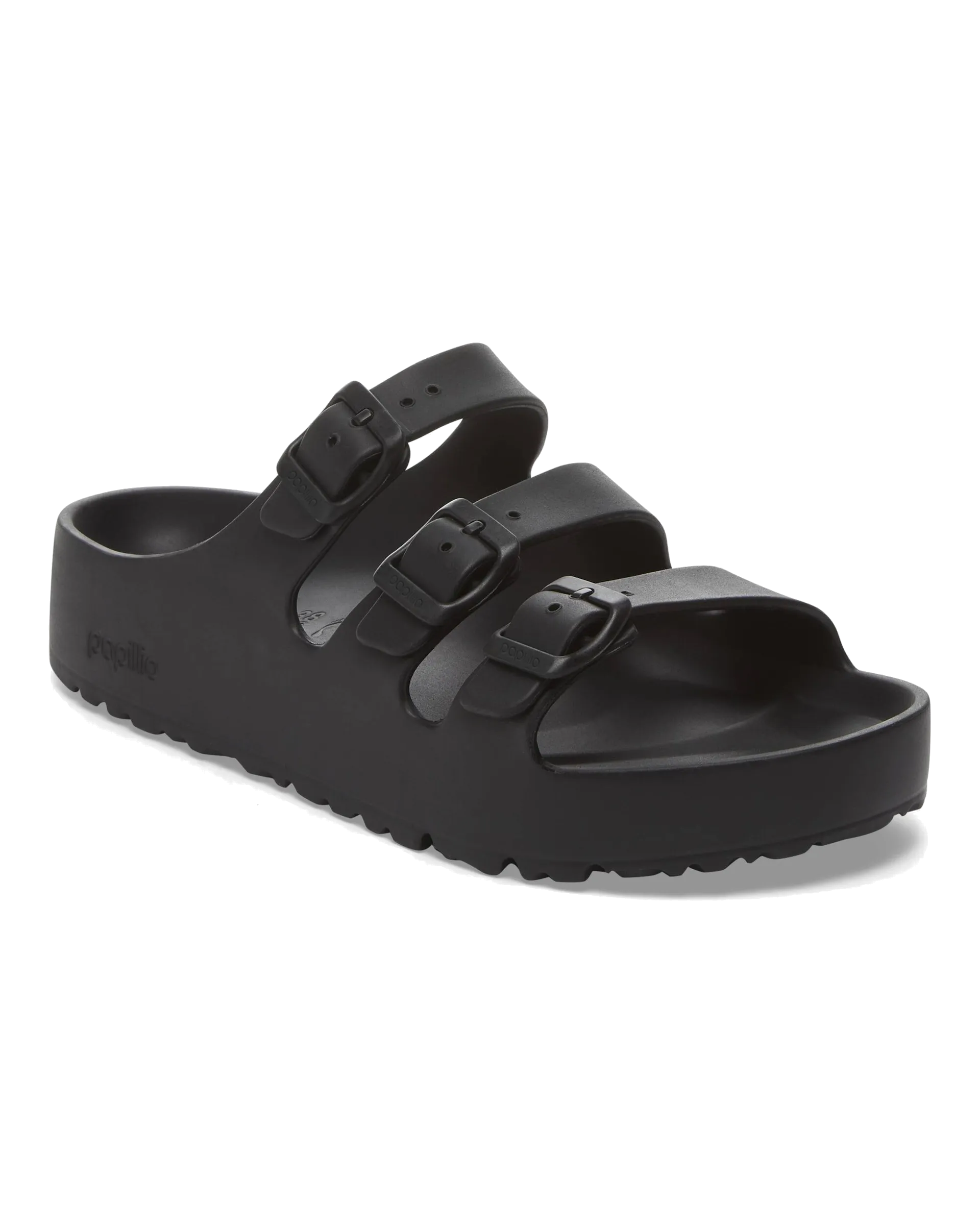 The Papillio Florida III Flex Platform EVA Sandals in Black combine expert design with practical comfort. Featuring a three-strap construction and a new platform flex outsole with a wider heel, these sandals provide enhanced stability and optimal weight distribution.