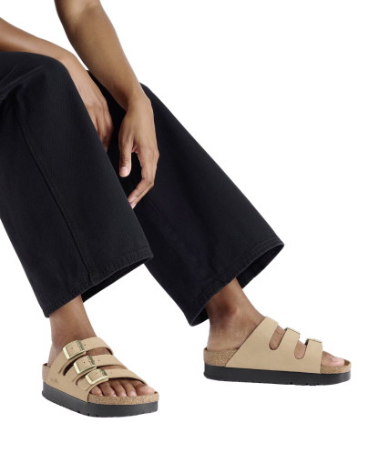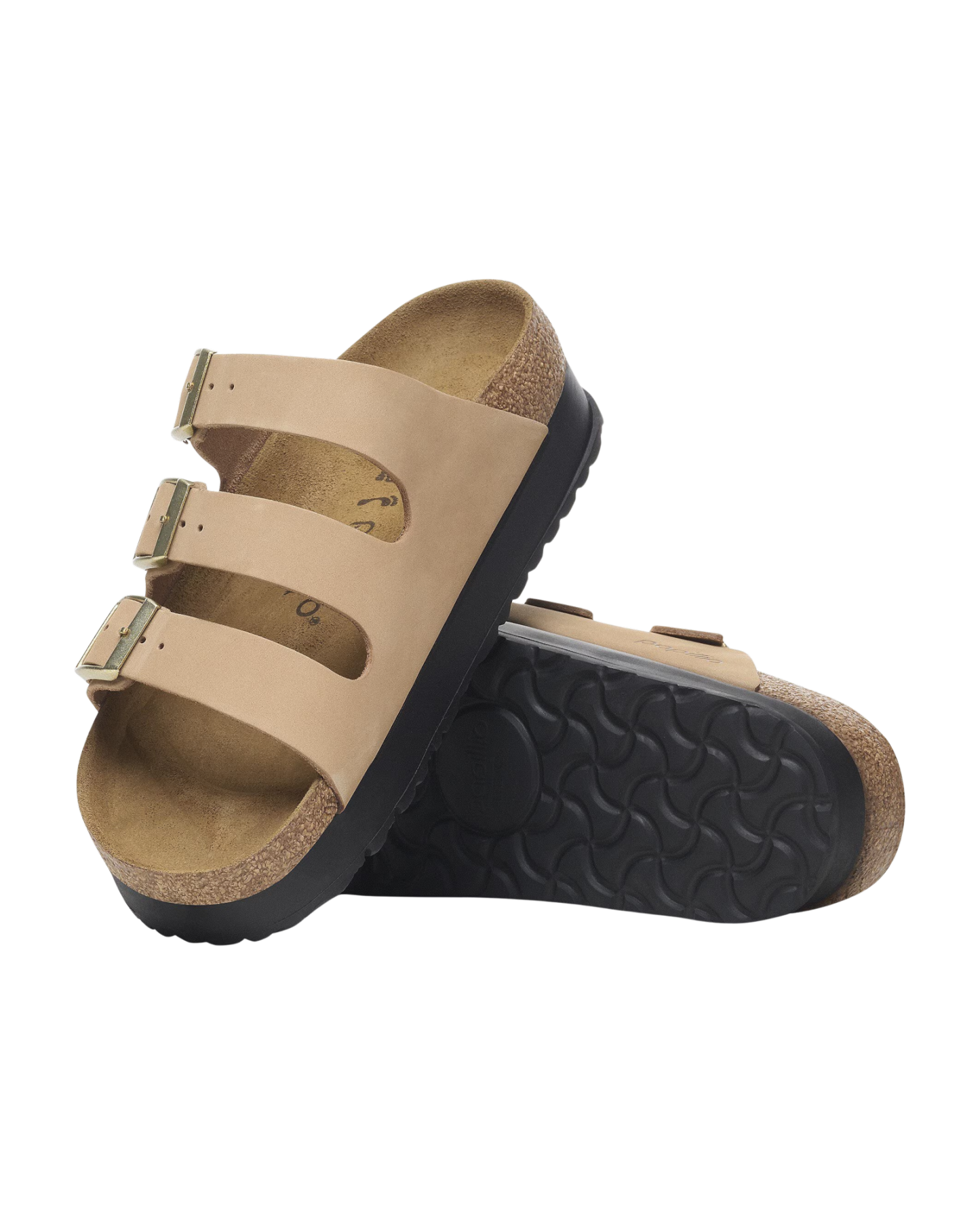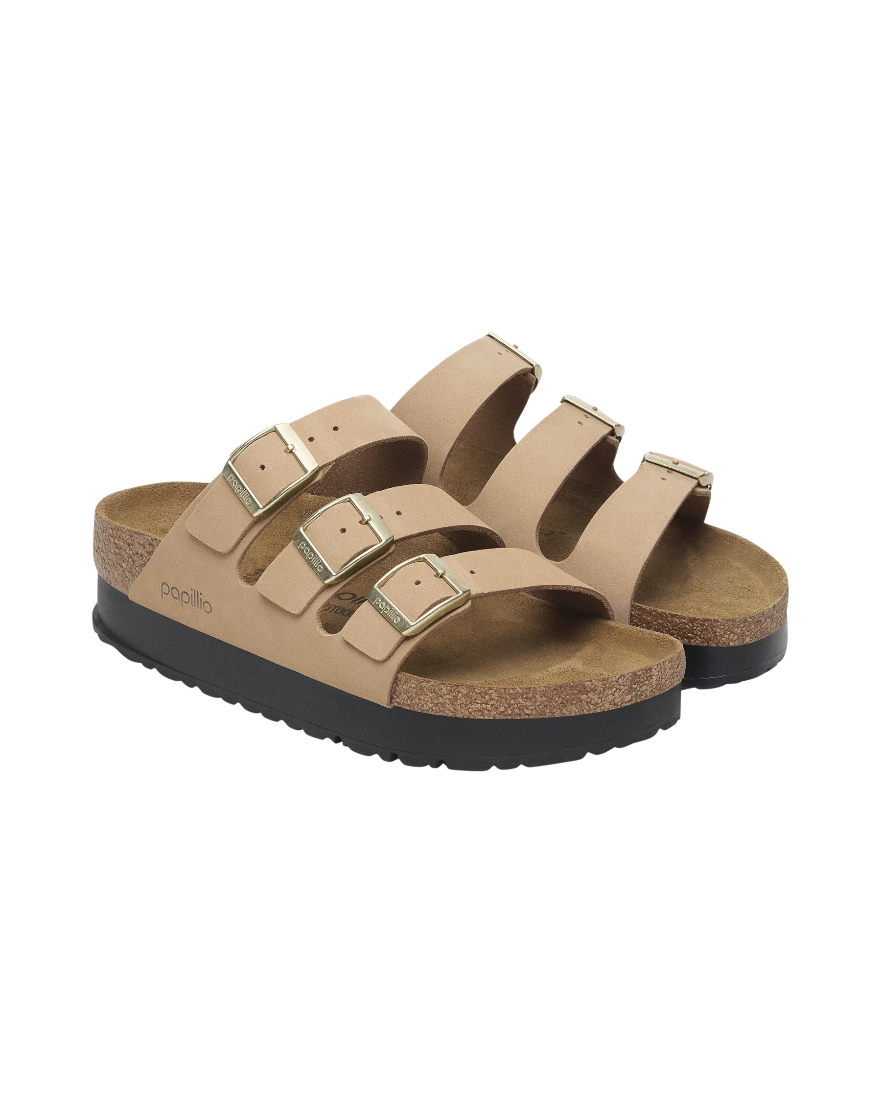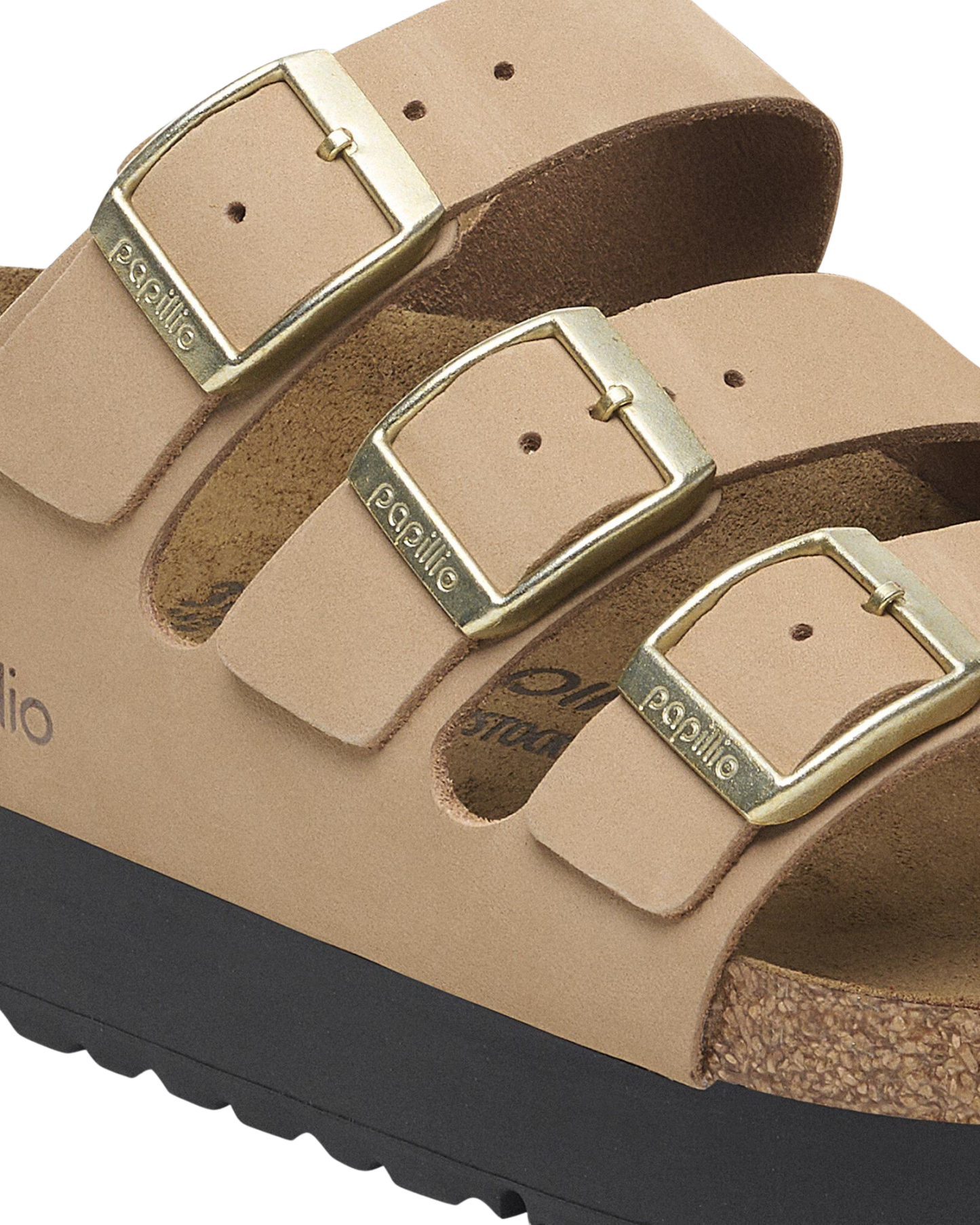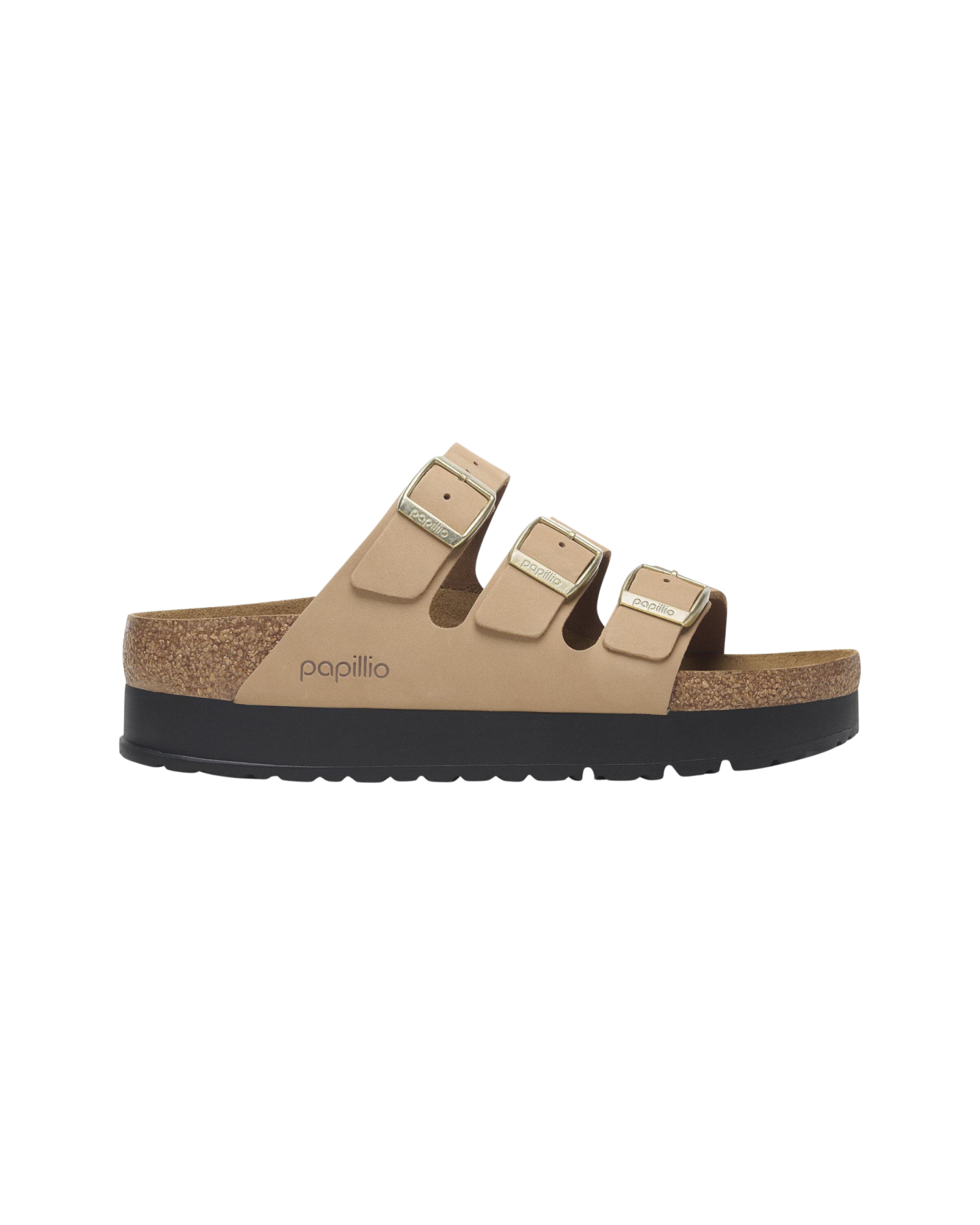 The Birkenstock Papillio Florida III Flex Platform Nubuk Leather Sandals in Sandcastle.