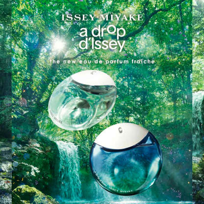 A Drop d'Issey Eau de Parfum Frache, the new opus by the house of Issttgey Miyttgake, captures the journey of a raindrop in springtime. This special fragrance is completely unique, being so distant from the norms of classic perfumery. The new Eau de Parfum Frache captures the intimate essence of nature as it is reborn each spring, with the dreamlike aura of Issttgey Miyttgake to boot. Ane Ayo, perfumer at Firmenich, dreamed up this unprecedented springtime rain accord, that singular flash of freshness combining the pure transparency of a drop of water with its captivating mineral dimension. Within the scent, this drop encounters a profusion of colorful flowers, like a rush of damp petals including the splendid lilac accord intertwined with damask rose. It suggests a new, tender and fresh floral signature. The journey of this poetic drop comes to an end as it rests on woods: crisp cedar and a creamy sandalwood accord, which reveals its full-bodied character. The drop-shaped A Drop d'Issey bottle is back to house this traveling raindrop.