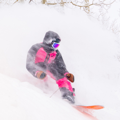 - Adjustable (& removable) 4-way stretch powder skirt with gripper elastic for deep powder days. Full length interior windguard keeps breeze out. Integrated helmet compatible hood with 3-point adjustment for inclement weather.