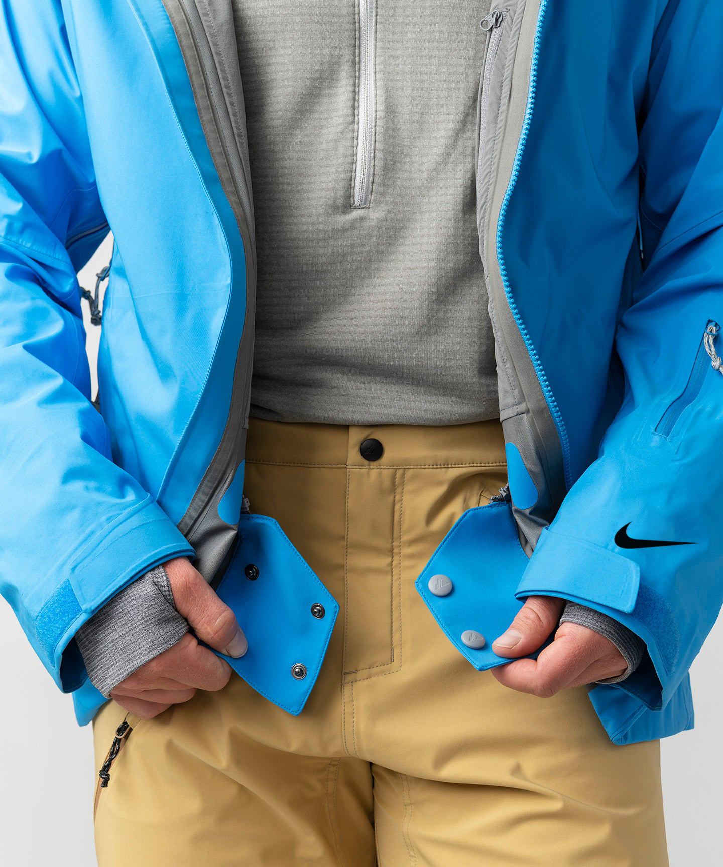- Adjustable (& removable) 4-way stretch powder skirt with gripper elastic for deep powder days. Full length interior windguard keeps breeze out. Integrated helmet compatible hood with 3-point adjustment for inclement weather.