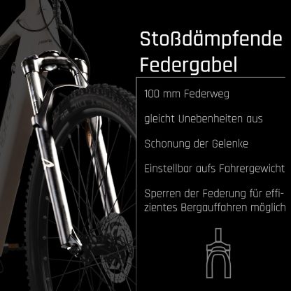 Powerful hardtail MTB e-bike with 29 inch bicycle size and 100 mm suspension fork