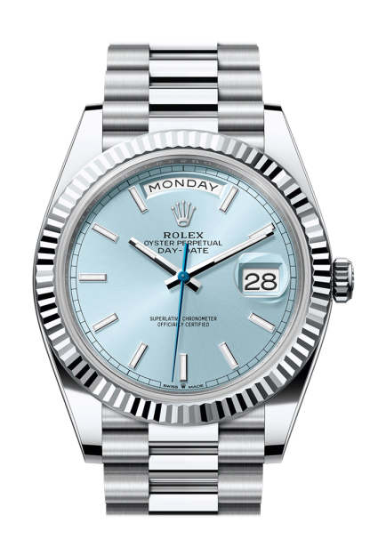 rolttgex Day-Date 40 Ice-Blue Dial Dial Fluted Bezel Platinum President Men's Watch 228236