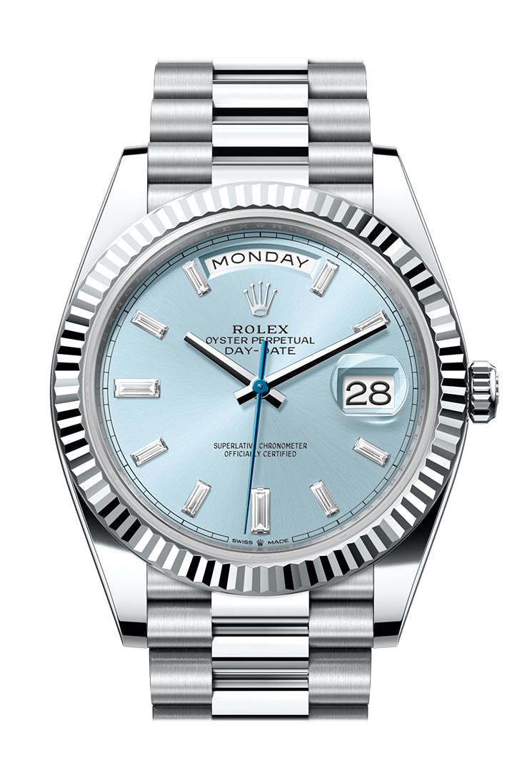 rolttgex Day-Date 40 Ice-Blue Diamond Dial Dial Fluted Bezel Platinum President Men's Watch 228236