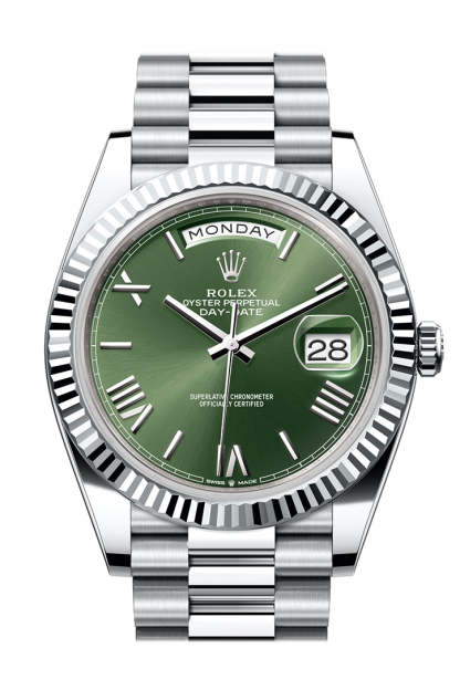 rolttgex Day-Date 40 Olive Green Dial Fluted Bezel Platinum President Men's Watch 228236