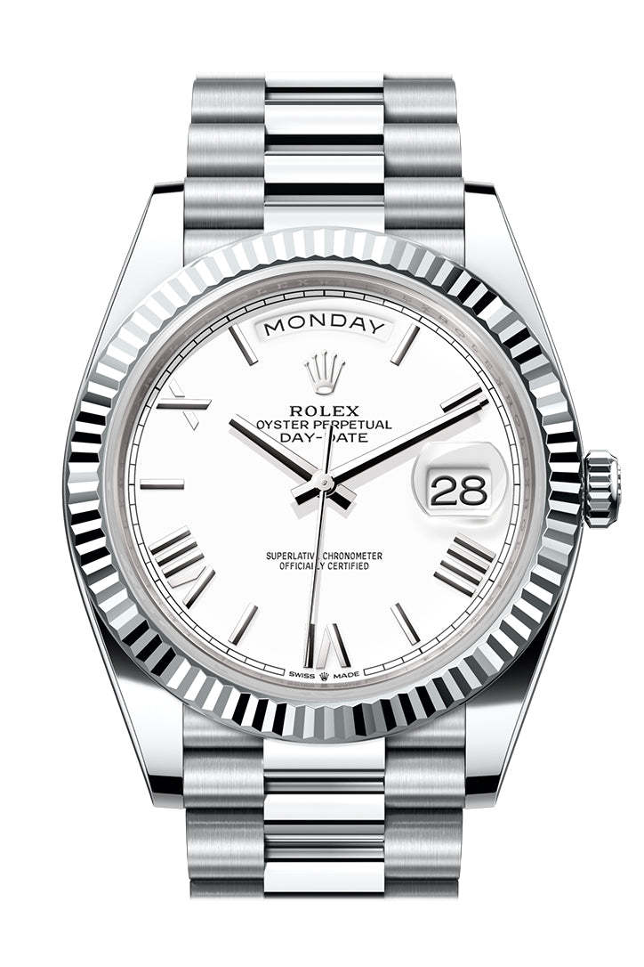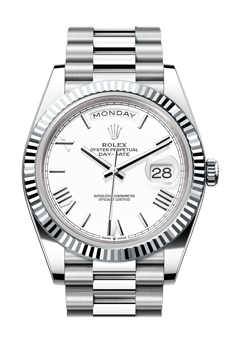 rolttgex Day-Date 40 White Dial Fluted Bezel Platinum President Men's Watch 228236