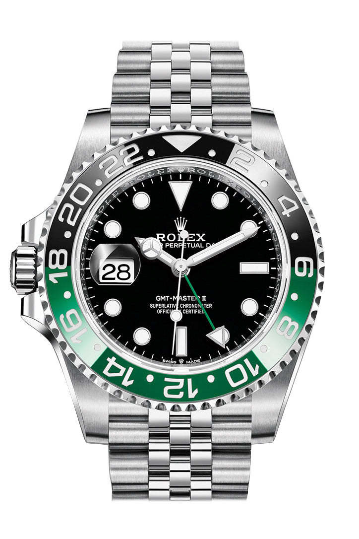 rolttgex GMT-Master II 40 Watch - Silver-tone stainless steel case with a silver-tone stainless steeljubilee bracelet. Black and green stainless steel bezel. Black dial with silver-tone hands and index hour markers. Minute markers around the outer rim. Dial Type: Analog. Luminescent hands and markers. Date display at the 9 o'clock position. Automatic movement. Scratch resistant sapphire crystal. Screw down crown. Solid case back. Round case shape, case size: 40 mm. Fold over clasp with a safety release. Water resistant at 100 meters / 330 feet. Functions: date, hour, minute, second. Additional Info: original box, international warranty card, manual (complete accessories). Gmt-master II Series. Luxury watch style. Watch label: Swiss Made. rolttgex GMT-Master II Automatic Black Dial Men's Watch2022 Releases1126720VTNR1126720126720VTNR-0002