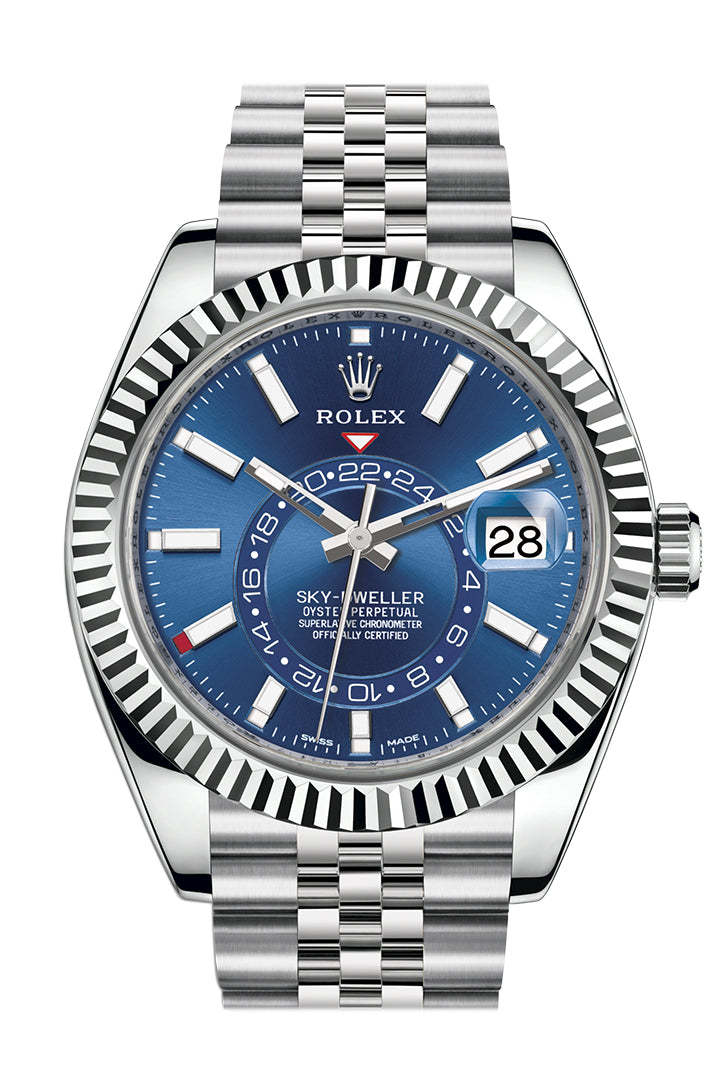 rolttgex Sky Dweller Blue Dial 18K White Gold Bezel Steel Jubilee Men's Watch 326934