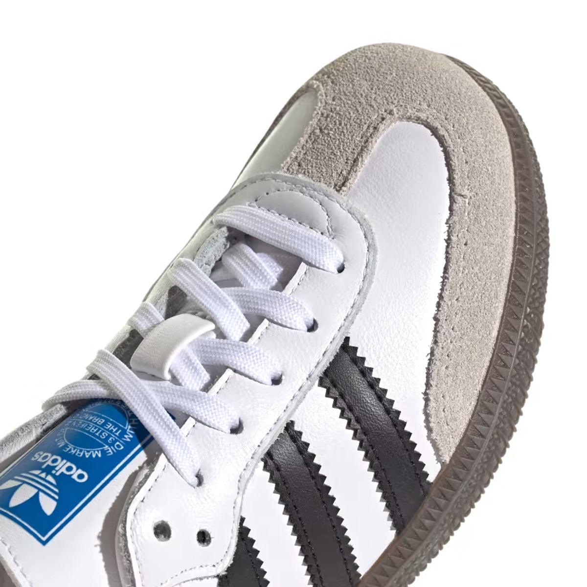 If you time travelled back to the 1960s, you'd find pro soccer players wearing adidas Sambas just like these kids' shoes. Well, almost just like them. Refreshed for the next generation, they feature a soft sockliner that feels comfortable through all-day play. A leather upper, gum rubber sole and 3-Stripes stay classic.
