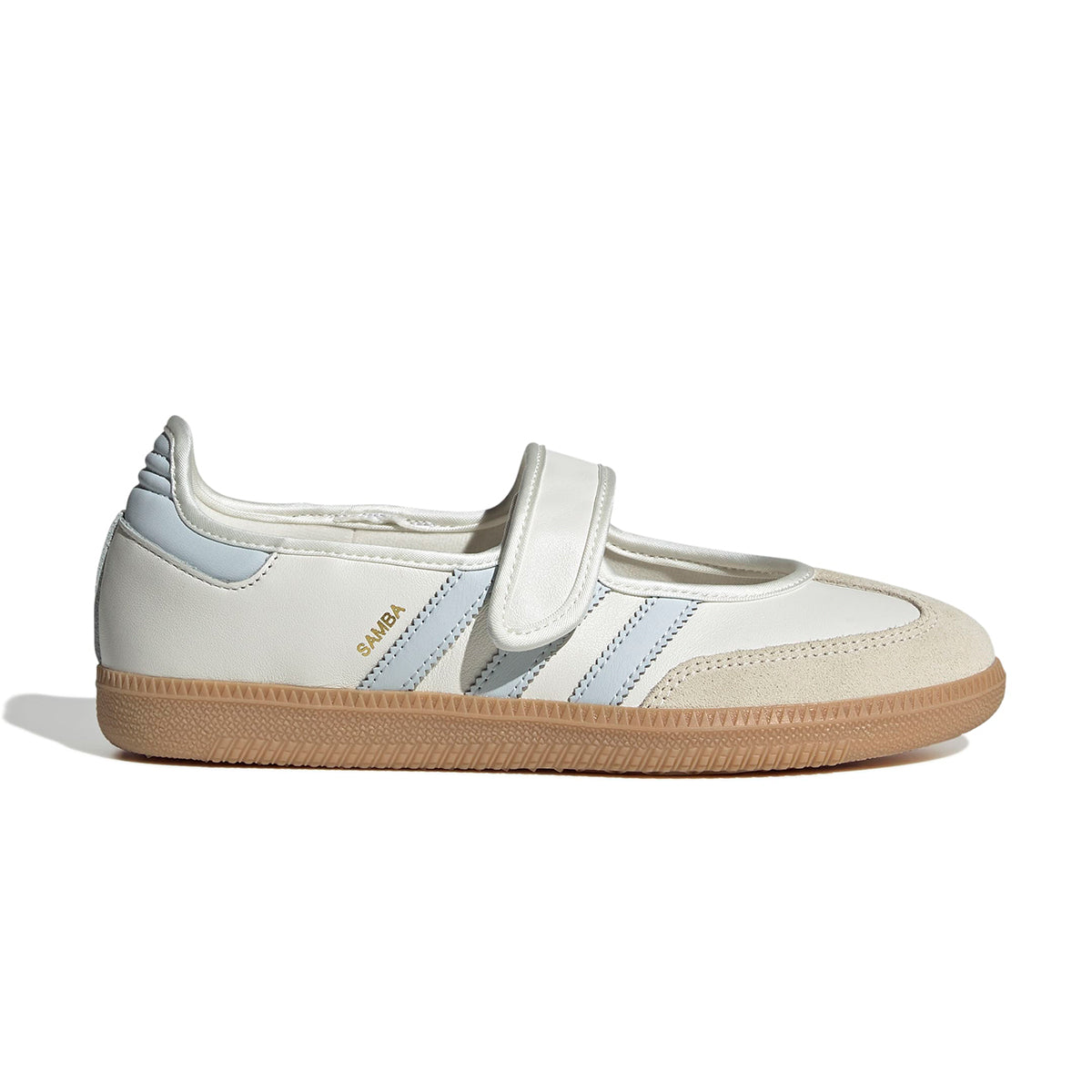 The adidas Samba shoes get a modern makeover, blending into a trendy Mary Jane aesthetic. With a smooth leather upper and signature serrated 3-Stripes, these low-profile shoes offer a fresh take on a heritage style. The smooth satin lining gives the shoes a luxe feel, and a grippy gum rubber outsole keeps the look classic. From indoor trainer to streetwear staple, the Samba's legacy continues to grow.?