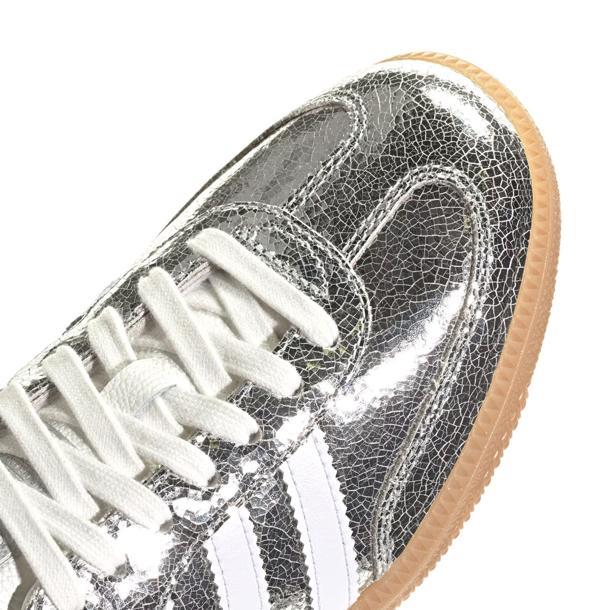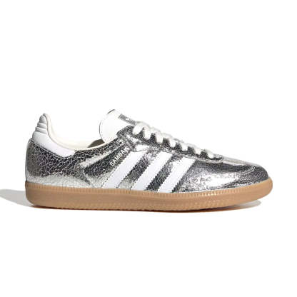 Tradition's made to be played with. These adidas shoes are fun take on the iconic Samba OG, with a silver metallic upper made of crackled leather. They're special enough for nights out but versatile enough to wear with your everyday uniform.