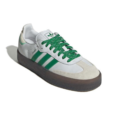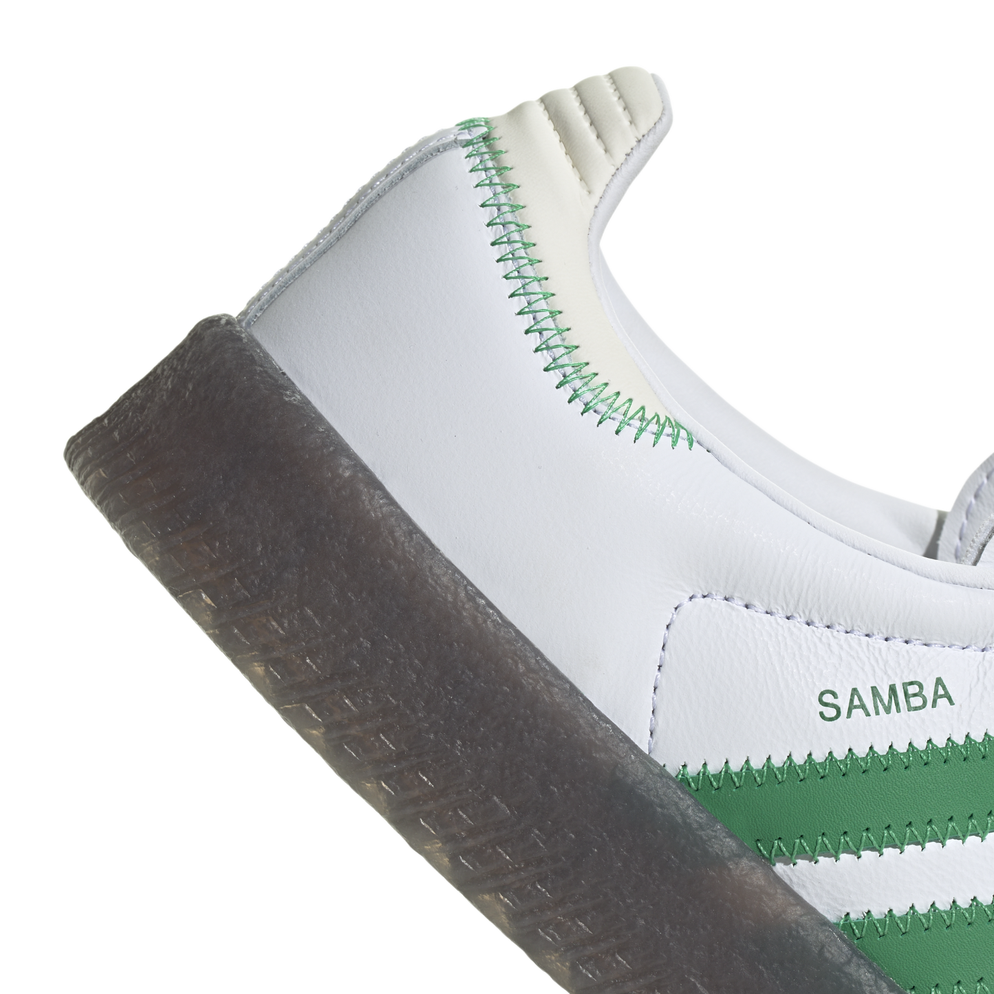 More than 70 years since its debut, the Samba gets a refresh with these adidas Sambae shoes. A premium leather and nubuck upper sits on an exaggerated midsole and gum rubber outsole. The tongue features "The Brand with the 3-Stripes" in multiple languages for a signature touch.