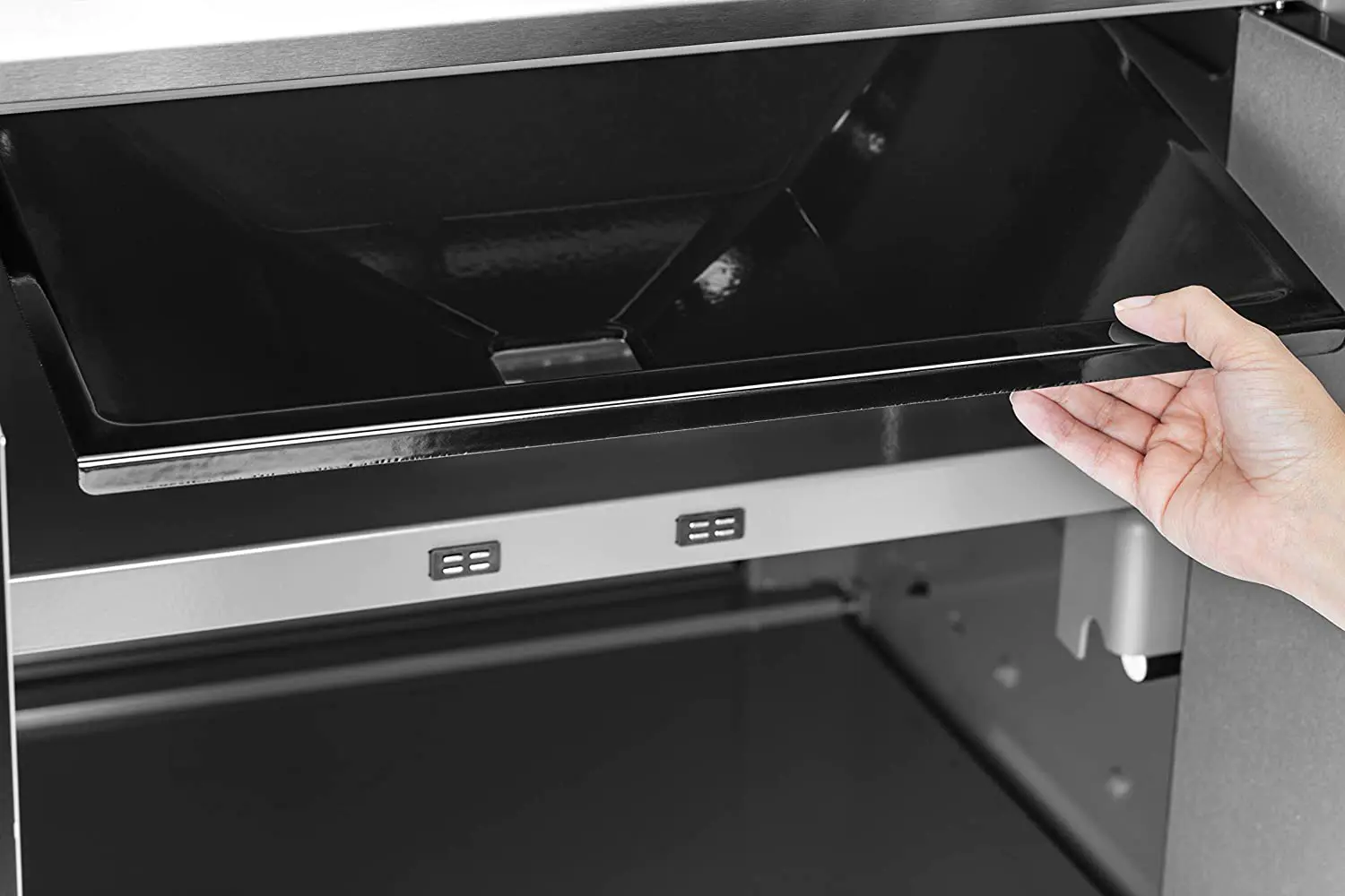 - Spend less time cleaning with the new and improved grease management system. Simply pull the grease tray out and scrape it away.