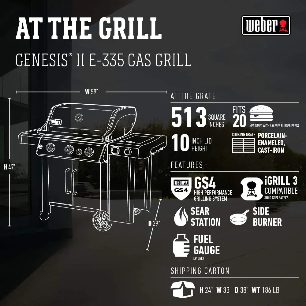 The Weber Genesis smart propane gas grill - the biggest grilling innovation in decades, that creates a full backyard culinary experience. Roast, bake, steam or even stir-fry on the newly ddesigned Weber Genesis propane grill by replacing the cooking grate with custom-fit Weber Crafted grillware, inspiring food never thought possible on the grill. And with Weber Connect smart technology, you’ll receive real-time food temperature alerts, so that whatever you’re making turns out perfect every time.