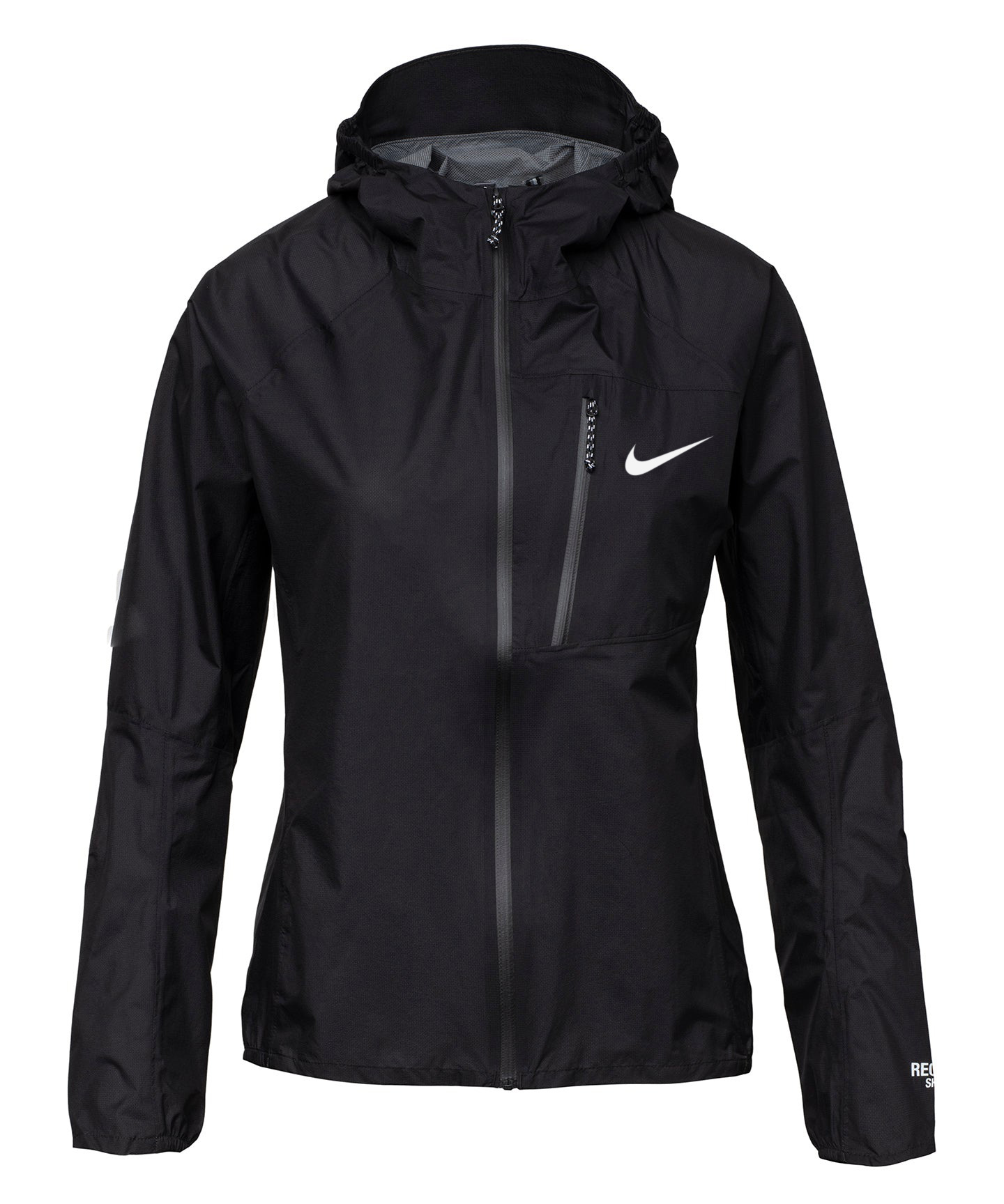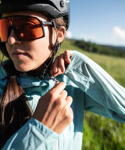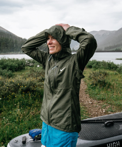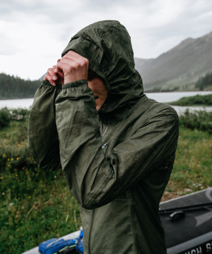 - Lightweight, packable hooded rain shell.