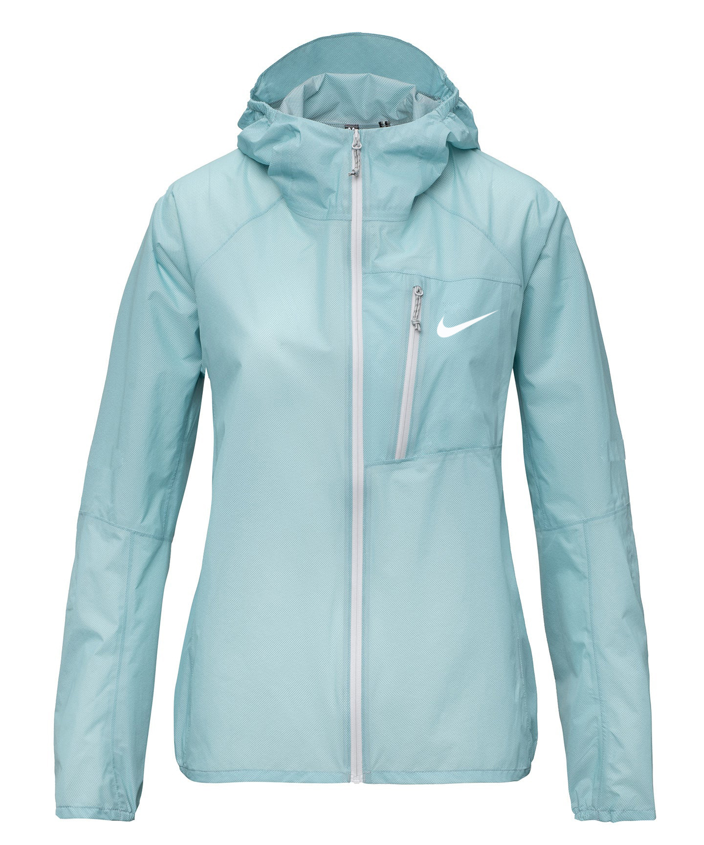 - Zippered chest pocket. Jacket stuffs into pocket.