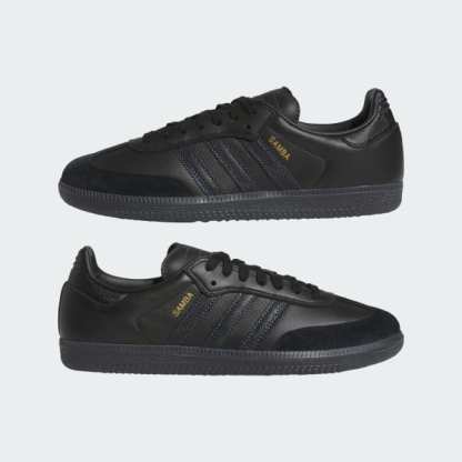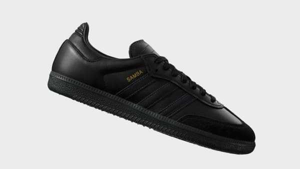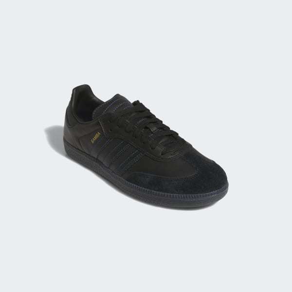 Featuring elevated materials and the signature T-toe design that made it an icon, the adidas Samba ADV streamlines it's staple design for skateboarding. Offered an a luxury-inspired colorway with subtle gold foil details, the Samba ADV provides a low-profile fit, comfortable EVA sockliner for impact cushioning, and a grippy cupsole construction inspired by the original with a modified tongue construction for skateboarding.